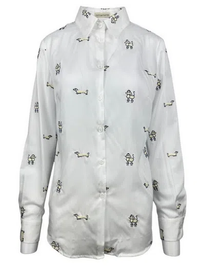 Shirt by Camicettasnon. Lyocell fabric. Dog embroidery. Long sleeves. Loose fit. Composition: 100% lyocell.