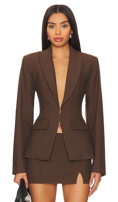 Camila Coelho Mireia Tailored Jacket in Brown. - size M (also in L, S, XL, XS) Camila Coelho Mireia Tailored Jacket in Brown. - size M (also in L, S, XL, XS) Self: 66% polyester 30% viscose 4% spandex Lining: 52% polyester 48% viscose. Made in China. Hand wash. Front hook and eye closure. Padded shoulders. 3-pocket design. Button cuffs. Midweight suiting fabric Item not sold as a set. COEL-WO60. CCOW95 H23. Camila Coelho's namesake collection is as bright as the Brazilian sun. The beauty and fashion entrepreneur wanted to create a label that reflects her roots: she was born in Brazil, and lived there until she moved to the States at fourteen. With bold palettes and sexy matching sets, her pieces evoke the feeling of lingering over a caipirinha in Fernando de Noronha or dancing in the colorful streets of Salvador. It's an elevated line for all the girls out there who dream big. More than anything, the Camila Coelho Collection empowers women to be both strong and glamorous; to take on the world in vibrant style, and have fun doing so.