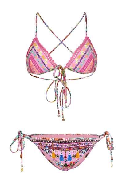 CAMILLA Embroidered Tri Bikini Patchwork Panorama In Multi