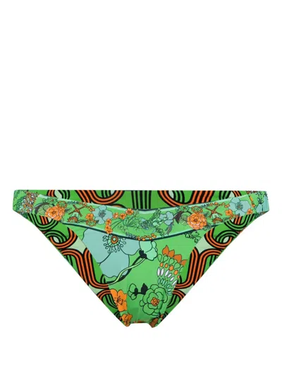 green recycled nylon blend stretch-design floral print elasticated side straps hipster-style cut geometric-print lining Be mindful to try on swimwear over your own garments. This item is made from at least 50% recycled or upcycled materials. For recycled synthetic clothing products, we highly recommend using a microfibre-catching washing bag to ensure that no microplastics that can pollute water are released in the process.