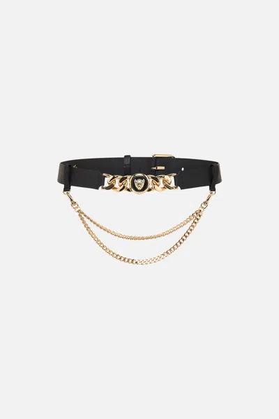 CAMILLA Leopard Button Belt With Chains Solid Black