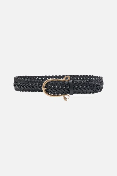 The Solid Black Snake Buckle Belt revels in an opulent world of deep black. This luxury leather belt showcases a woven body highlighted with a custom snake buckle epitomising CAMILLA decadence. Explore more from the House Of The Sun collection.
