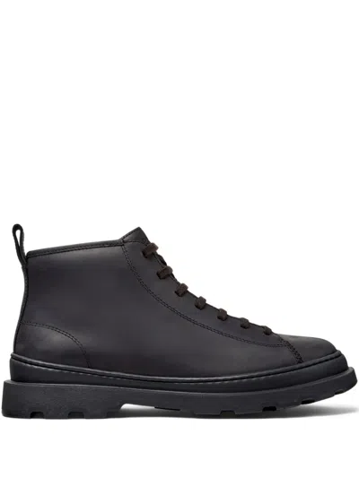 An extragrippy lug sole boldly grounds a sleek, streamlined boot given a sporty turn with sneaker-style lacing. Lace-up style Removable insole Leather upper/recycled-polyester lining/rubber sole Imported