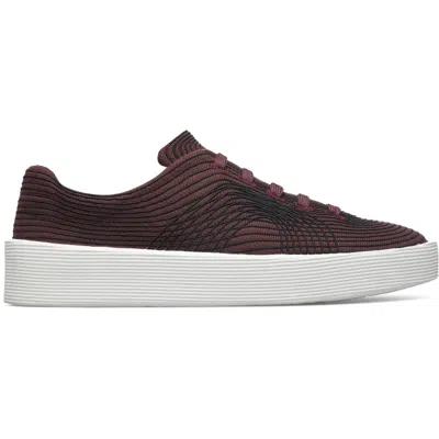 CAMPER - Burgundy sneaker for women. Beige and white upper, made of 70% TENCEL™ Lyocell fabric with laces. White and black 51% recycled EVA outsole. A Little Better, Never Perfect Inspired by the clean designs of architect Le Corbusier, our unisex Courb shoes offer ultimate comfort for any city adventure.