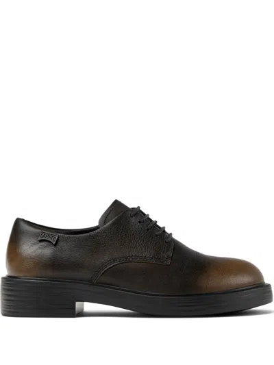black and brown leather lace-up fastening flat sole round toe