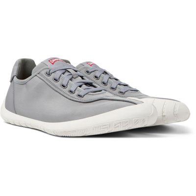 Path low-top sneakers from CAMPER featuring medium grey, recycled polyester, logo patch at the tongue, branded insole, round toe, front lace-up fastening and flat rubber sole. Conscious: This item is made from at least 50% recycled or upcycled materials. For recycled synthetic clothing products we highly recommend using a microfibre-catching washing bag to ensure that no microplastics that can pollute water are released in the process..
