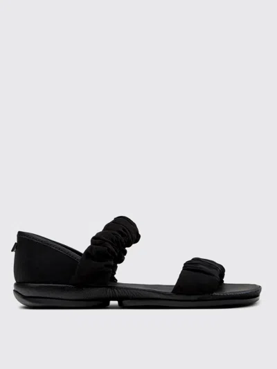 CAMPER - Black recycled PET and leather women's sandals with EVA footbed and recycled rubber outsoles (20% recycled). First launched in 2005, our Right combines the flexibility of ballerina slippers with the durable protection of street-ready rubber soles.