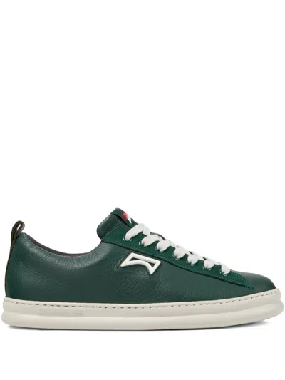 dark green leather upper lace-up fastening suede heel tab flat sole logo detail