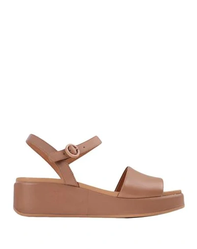 CAMPER Sandals. no appliqués, buckle fastening, square toeline, wedge heel, covered wedge, fully lined, rubber sole, contains non-textile parts of animal origin, solid color. 100% Bovine leather