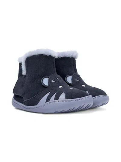 CAMPER Kids' Tiger-face Fur-trimmed Boots In Blue