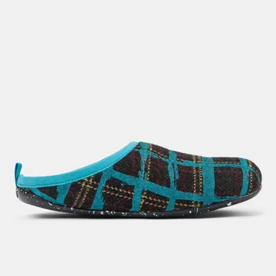 Wabi patterned wool slippers from CAMPER featuring black, blue, wool, check pattern, grid pattern, round toe, branded insole, pull-tab at the heel, slip-on style and flat sole. This item is made from at least 50% recycled or upcycled materials. For recycled synthetic clothing products, we highly recommend using a microfibre-catching washing bag to ensure that no microplastics that can pollute water are released in the process.. Learn more about what makes a product Conscious on our Conscious Criteria page.