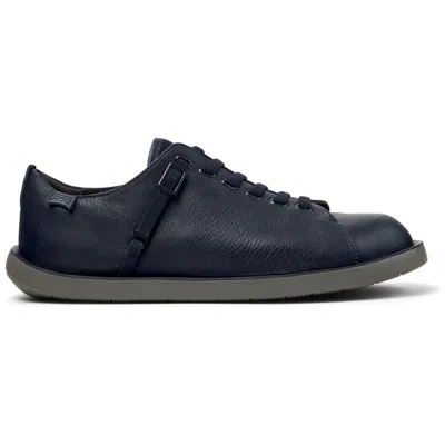 CAMPER - Blue calfskin and textile shoes for men with OrthoLite Recycled footbeds, elastic laces and XL EXTRALIGHT EVA outsoles. With a flexible, lightweight feel, Wagon features natural and sustainable materials for a relaxed summer look.