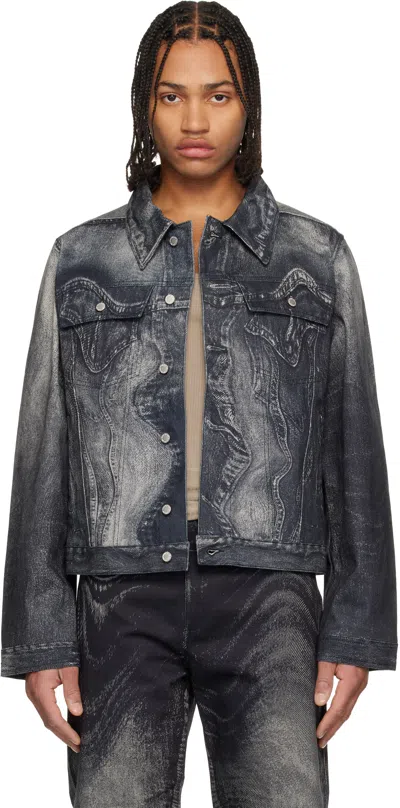 CAMPERLAB Black Distorted Print Denim Jacket In Multi