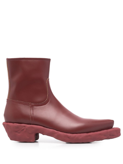 CAMPERLAB Leather Ankle Boots In Red