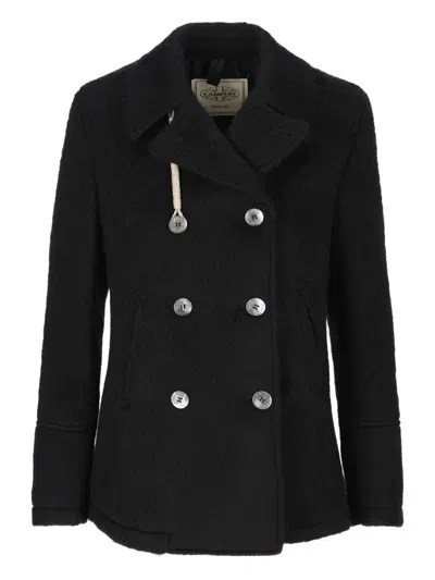 Camplin double-breasted coat with a navy style reinterpreted in a contemporary key. Made of acrylic fabric, it stands out for its lightness and durability, ideal for mid-season and cooler days. The iconic details of the maison confirm its authentic and timeless character. - Material: 59% acrylic, 12% polyester, 16% wool, 11% alpaca, 2% other fibers - Color: black - Button closure - Central back vent - Side welt pockets - Decorative drawstring on one shoulder, Camplin's distinctive signature - Item code: 38300032TB