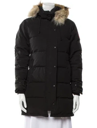 Canada Goose Down Coat Black With Hood Fur Trim & Stand Collar Short Slit Pockets & Zip Closure Fit: Coats by Canada Goose typically fit small, consider taking a size up. | Canada Goose Down Coat in Black, Women's S