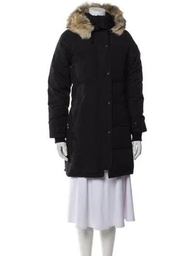 Canada Goose Down Coat Black With Hood Fur Trim & Stand Collar Short Slit Pockets & Zip Closure Fit: Coats by Canada Goose typically fit small, consider taking a size up. | Canada Goose Down Coat in Black, Women's XXS