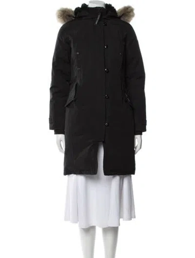 Canada Goose Down Coat Black With Hood Fur Trim & Stand Collar Knee-Length Flap Pockets & Zip Closure Fit: Coats by Canada Goose typically fit small, consider taking a size up. Unfortunately, due to restrictions, this item may not be eligible for shipping in all areas. | Canada Goose Down Coat in Black, Women's XS