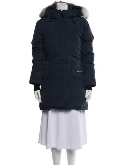 Canada Goose Down Coat Blue With Hood Fur Trim & Stand Collar Short Flap Pockets & Zip Closure Fit: Coats by Canada Goose typically fit small, consider taking a size up. Unfortunately, due to restrictions, this item may not be eligible for shipping in all areas. | Canada Goose Down Coat in Blue, Women's S