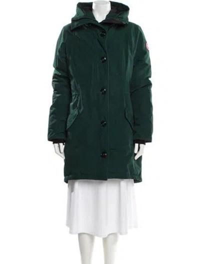 Canada Goose Down Coat Green With Hood Pointed Collar Knee-Length Zip Closure Fit: Coats by Canada Goose typically fit small, consider taking a size up. | Canada Goose Down Coat in Green, Women's L