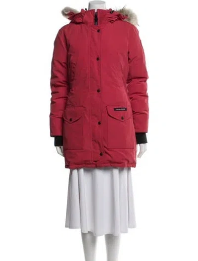 Canada Goose Down Coat Red With Hood Signature Logo Embroidered & Fur Accents Stand Collar Short Flap Pockets & Zip Closure Fit: Coats by Canada Goose typically fit small, consider taking a size up. | Canada Goose Down Coat in Red, Women's XS