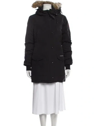 Canada Goose Down Down Coat Blue With Hood Embroidered & Fur Accents Stand Collar Short Flap Pockets & Zip Closure Fit: Coats by Canada Goose typically fit small, consider taking a size up. Unfortunately, due to restrictions, this item may not be eligible for shipping in all areas. | Canada Goose Down Down Coat in Blue, Women's XS