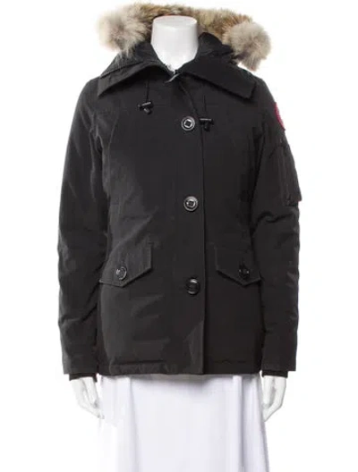 Canada Goose Down Jacket Black With Hood Fur Trim & Pointed Collar Flap Pockets & Zip Closure Fit: Jackets by Canada Goose typically fit true to size. Unfortunately, due to restrictions, this item may not be eligible for shipping in all areas. | Canada Goose Down Jacket in Black, Women's XS