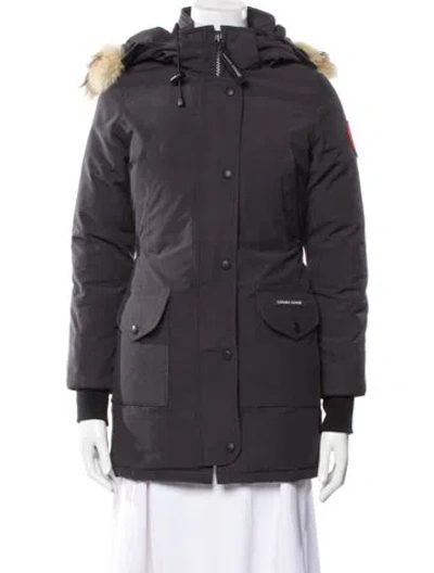 Canada Goose Down Jacket Blue With Hood Fur Trim & Stand Collar Flap Pockets & Zip Closure Fit: Jackets by Canada Goose typically fit true to size. Unfortunately, due to restrictions, this item may not be eligible for shipping in all areas. | Canada Goose Down Jacket in Blue, Women's XXS