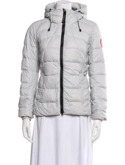 Canada Goose Down Jacket Grey With Hood Embroidered Accent & Stand Collar Slit Pockets & Zip Closure Fit: Jackets by Canada Goose typically fit true to size. | Canada Goose Down Jacket in Grey, Women's S