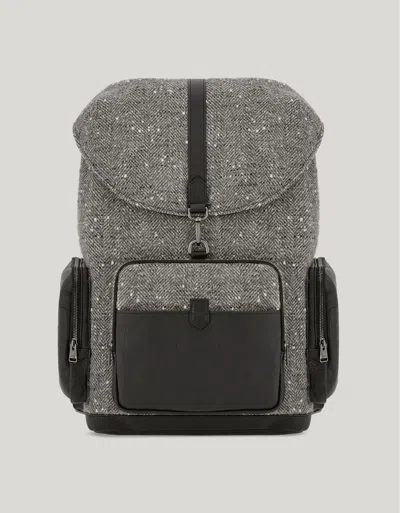 CANALI Alpaca Wool And Hammered Calfskin Blend Three Pocket Backpack In Silver