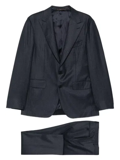 dark blue checked pattern two-button fastening peak lapel flap pockets