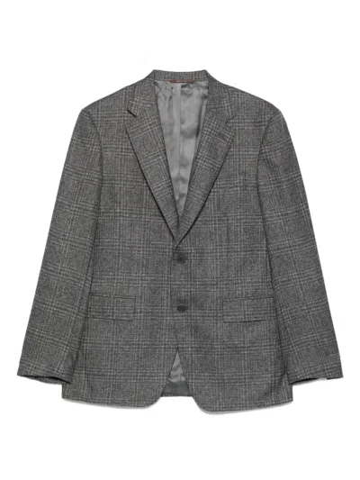 grey checked pattern two-button fastening notched lapels flap pockets long sleeves