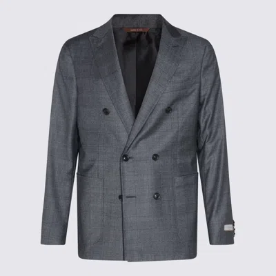 Darl grey wool blazer from Canali featuring long sleeves, pockets, double breasted fastening with buttons and regular vestibility. Composition: _, 100% Wool