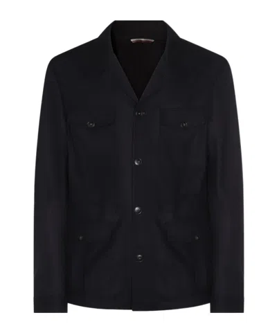 Black wool casual jacket from Canali featuring long sleeves, frontal fastening, multipockets and regular vestibility.Size Type: Man IT