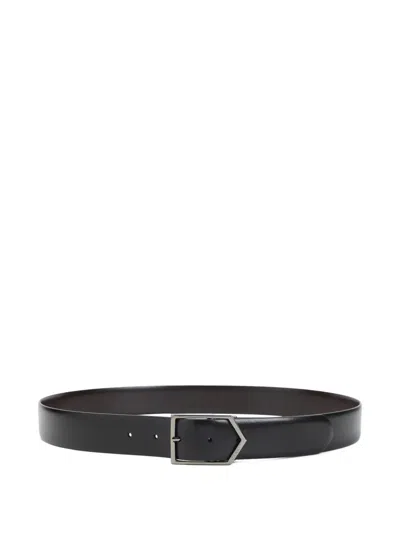 Canali leather belt embodies refined simplicity and premium craftsmanship. The polished silver buckle contrasts beautifully with the rich black leather, making it a timeless accessory for both casual and formal outfits. Multiple adjustment holes provide a tailored fit, showcasing versatility and elegance. Polished silver buckle Rich black leather Timeless design Suitable for casual and formal wear Multiple adjustment holes for fit
