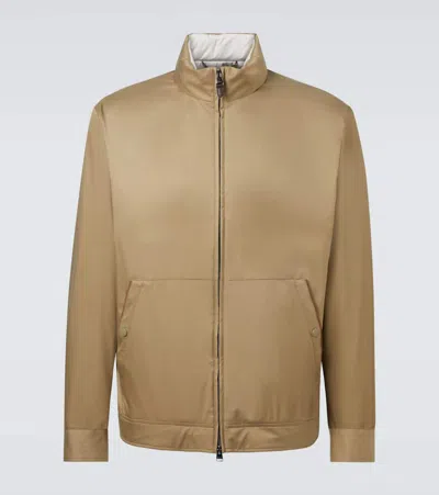 Material: 100% polyester. Care instructions: specialist clean. Made in Italy. Designer color name: 703. Item color: beige. Coating: 100% polyurethane. Details: 100% leather. Closure: two-way zipped front. Contains non-textile parts of animal origin. Concealed hood. Pockets: snap-buttoned pockets. Drawstring at the hem for adjustable fit. Cuff: buttoned.