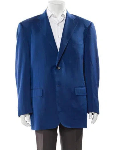 Canali Wool Blazer Blue Notched Lapels & Double Vents Satin Lining Two-Button Closure at Front Fit: Suiting by Canali is often tailored to fit, be sure to reference measurements. | Canali Wool Blazer in Blue, Men's US46, IT56 | XXL