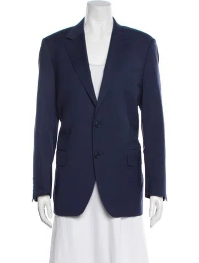Canali Wool Blazer Blue Pointed Collar Flap Pockets & Button Closure Fit: Jackets by Canali typically fit true to size. | Canali Wool Blazer in Blue, Women's XL