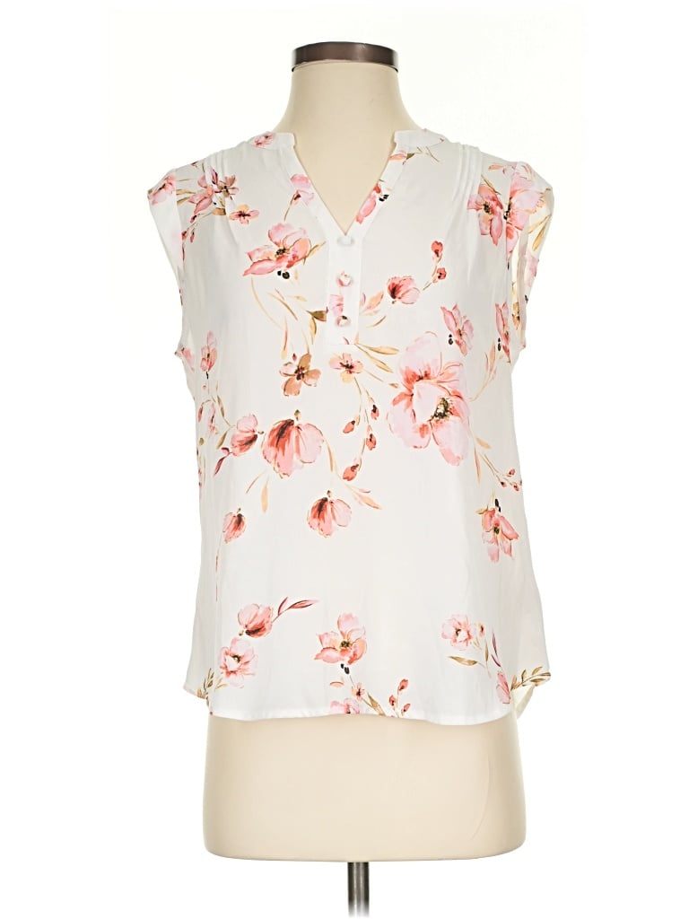 Candie's Sleeveless Blouse, Size: Small. Item Details: Ivory, Floral Pattern, Plunge Neckline, Junior Tops, 100% Polyester