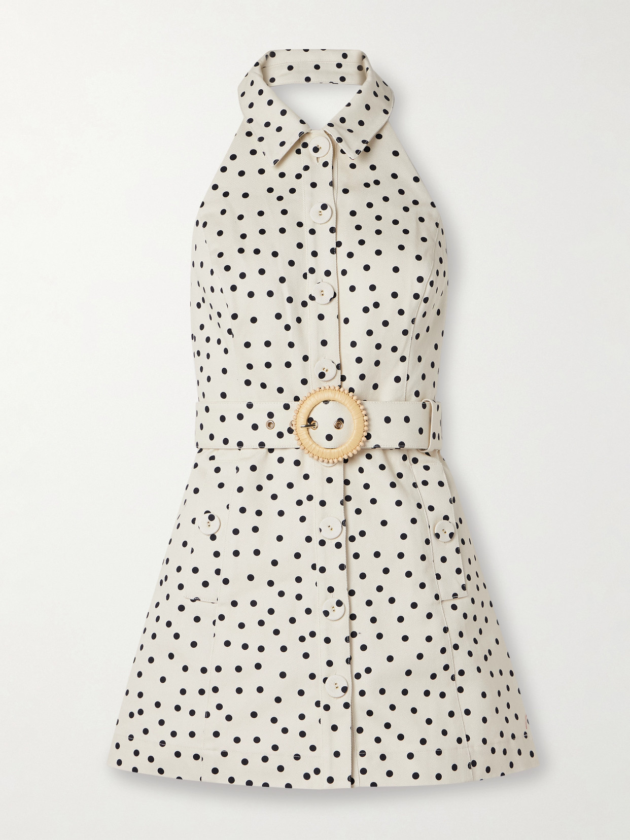 CARA CARA Parker Polka-dot Cotton Mini Halter Shirt Dress In Multi