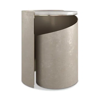 Caracole Nautilus Side Table.Color:Taupe Silver/Whisper of Gold.Material:Travertine top; metal base.