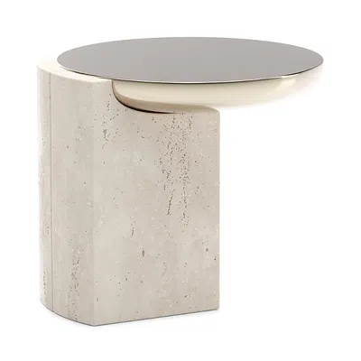 Caracole Overlap Round Side Table, Light.Color:Whisper of Gold, Travertine.