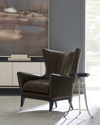 Handcrafted chair in top grain leather. Birch solids and metal ferrules. Loose spring down seat cushion. Stitched welt detail on inside back and inside arm. Stapled, nailed, and glued. Overall, 34"W x 34.5"D x 40"T. Inner dimensions, 24"W x 21.5"D x 19.5"T. Arm height, 25". Imported. Boxed weight, approximately 121 lbs.