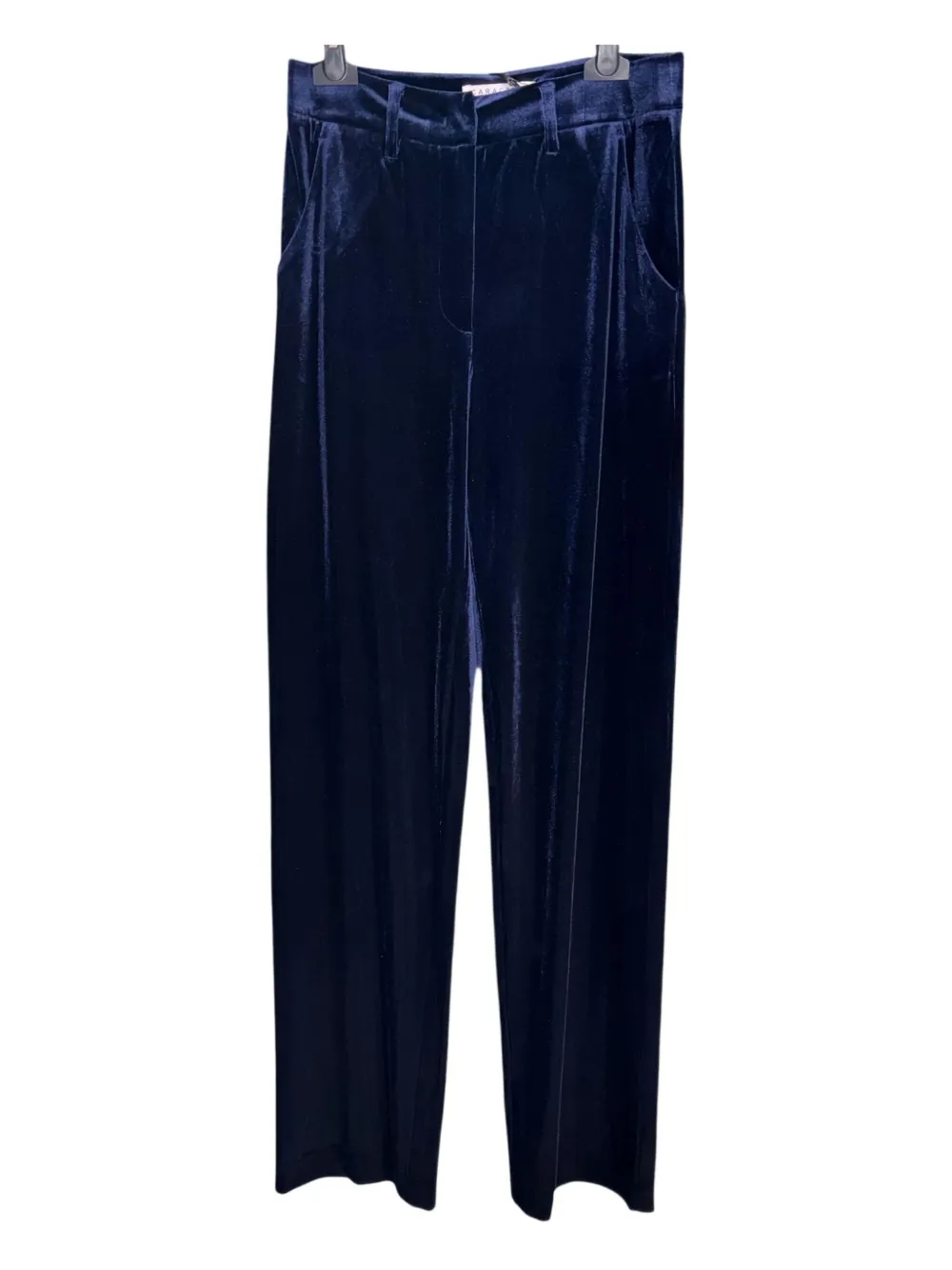 dark blue front diagonal pockets belt loops concealed fastening textured effect