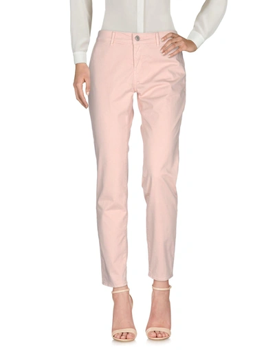plain weave, solid color, mid rise, regular fit, straight leg, leather applications, logo, button, zip, multipockets, chinos , Color: Pink , Size: 31