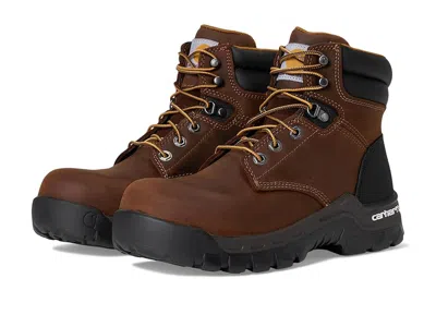 Carhartt 6 Rugged Flex Comp Toe Work Boots - Women's Work Boots : Brown Oil Tanned Leather : The Carhartt 6 Rugged Flex Comp Toe Work Boot makes sure you give the best performance with its durable leather, supportive comfort, and flexible design, keeping you protected all day long. ; Composite safety toe meets or exceeds ASTM 2413-18 I/75 C/75 EH (electrical hazard) safety standards. ; Cushioned Carhartt PU footbed that is removable to add width as needed. ; Style number: CWF5355. ; Style number: FF5361-W (Black Oil Tanned Leather). ; Oil-tanned leather upper with lace-up closure for custom fit. ; Synthetic lining. ; FastDry Technology Lining wicks away sweat for comfort. ; Traditional lacing for preferred fit. ; Padded collar and tongue for long-lasting comfort. ; Cushion comfort layer provides a soft base layer under the supportive insole. ; Shock-absorbing insert protects your feet and absorbs the impact of everyday walking. ; EVA midsole with PU Strobel pad for added comfort and support. ; Rubber heel bumper. ; Rugged Flex rubber outsole is flexible, non-marking, and is oil and slip resistant that meets or exceeds the performance requirement set forth by ASTM standard F3445-21. All footwear is labeled as slip resistant on the outsole and the ASTM standard is identified on the inside of the shoe. ; Outsole features a pronounced lug pattern that are self-cleaning and provide excellent traction. ; Rubber toe bumper protects against abrasions and scraps. ; Identifies secondary protection against incidental contact with electrical circuits of 18,000 volts or less under dry conditions. ; Imported. Measurements: ; Weight: 2 lbs 3 oz ; Shaft: 6 in ; Product measurements were taken using size 8, width B - Medium. Please note that measurements may vary by size. | Carhartt 6 Rugged Flex Comp Toe Work Boots Women's Work Boots Brown Oil Tanned Leather : 11 B - Medium