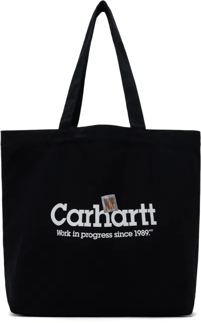 CARHARTT Black Canvas Graphic Large Tote In Label Script Print