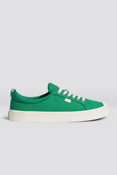 Brought together by a shared love of board sports, cofounders David and Fernando came together to create a line of comfy, stylish shoes that are sustainably made. The OCA Low draws inspiration from retro athletics to bring you a simple, low-key sneaker, perfect for everyday wear. Handcrafted using a robust canvas, it exists at the intersection of functionality and style. With our 100 percent vegan insoles made from organic mamona oil and cork , it ensures optimal comfort and fit. The OCA Low boasts a unique cap-toe design and a fully stitched, lightweight outsole for a durable, long-lasting shoe. Content + Care Upper: 100% Canvas. Lining: 100% Canvas. Sole: 100% Slip-resistant rubber. Insole: Mamona oil bio based with cork insert with CARIUMA logo. Laces: Made with recycled plastics + organic cotton, with debossed metal aglets. Construction: Handmade vulcanized sneaker; stitched outsole. We love that worn-out look, but you can spot-treat stains as they arise. Keep your sneakers out of the washing machine, they'll do better with some TLC; Hand-wash your sneakers with a brush to reach in between grooves (or an old kitchen towel) with neutral soap & cold water. TIP: a repurposed toothbrush or old T-Shirt works a charm! Imported Size Dimensions: True to size Made with Responsible Material This item was produced using at least 50% responsible materials. These materials can include recycled content, textiles made with responsible sourcing or any components externally certified for reduced environmental impact. Cariuma OCA Low Canvas Sneaker in Green, Women's at Urban Outfitters