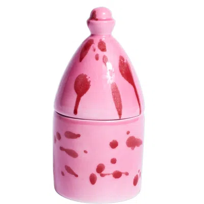 CAROLA FRA I TRULLI Red Trullo Candle Holder With Pomegranate Scented Soy Wax Candle In Pink