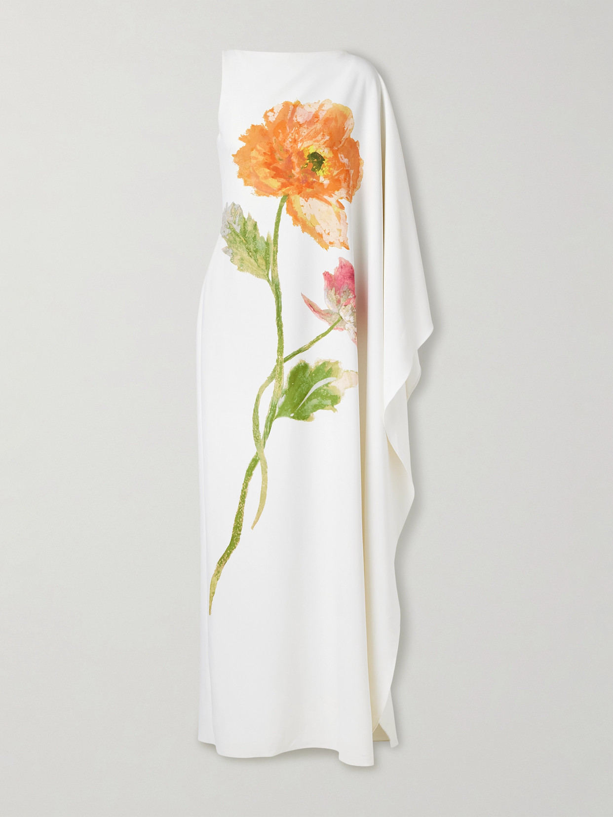 CAROLINA HERRERA One-sleeve Draped Floral-print Crepe Gown In White